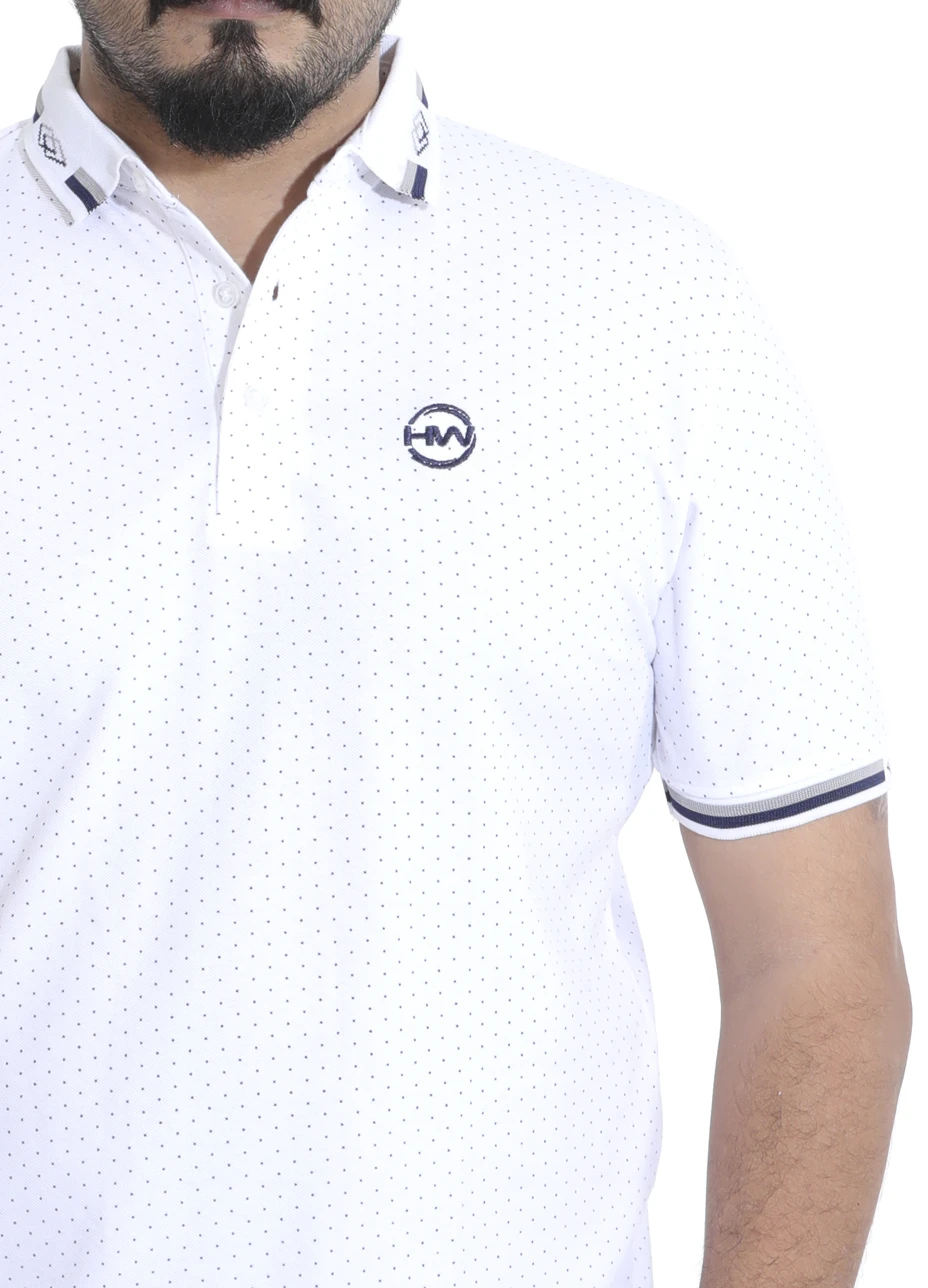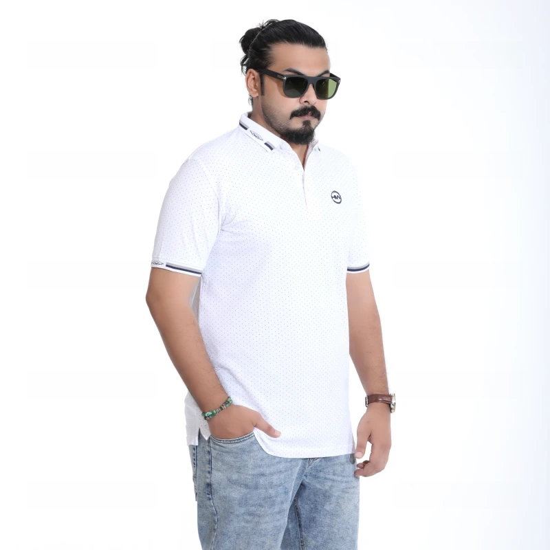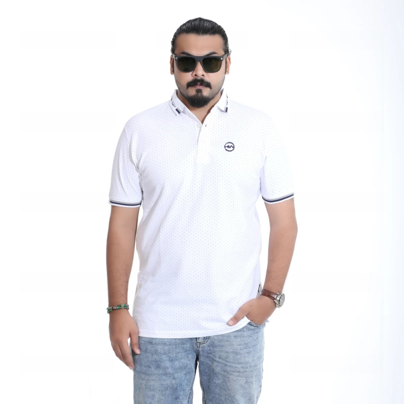 Classic White Polo T-Shirt with Blue Micro-Dots