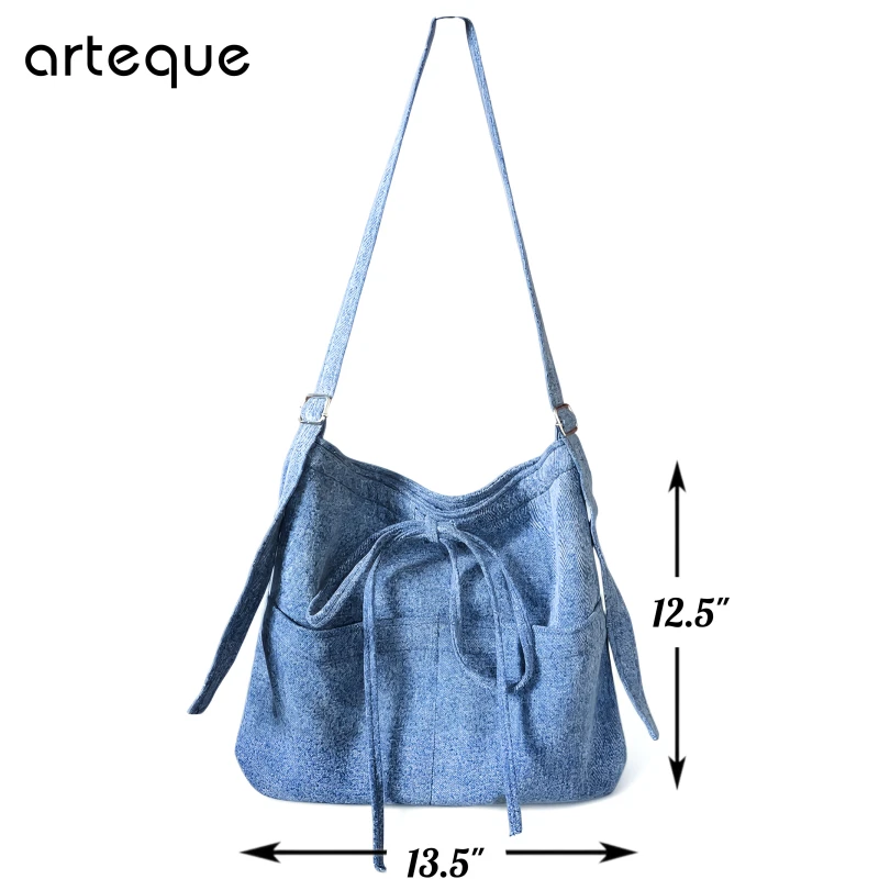 | Title: | Casual Blue Denim/Twill Fabric Tote Shoulder Bag |