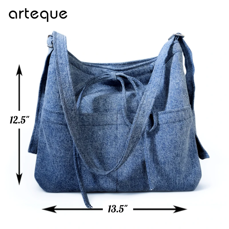 Introducing the Denim Drawstring Tote Bag, a versatile and stylish addition to your accessory collection. Crafted from premium denim in a classic blue shade, this tote features a unique drawstring closure with long, adjustable ties that double as decorative accents, adding a touch of bohemian charm. The spacious design includes an open interior with a convenient front pocket, perfect for carrying your daily essentials with ease.