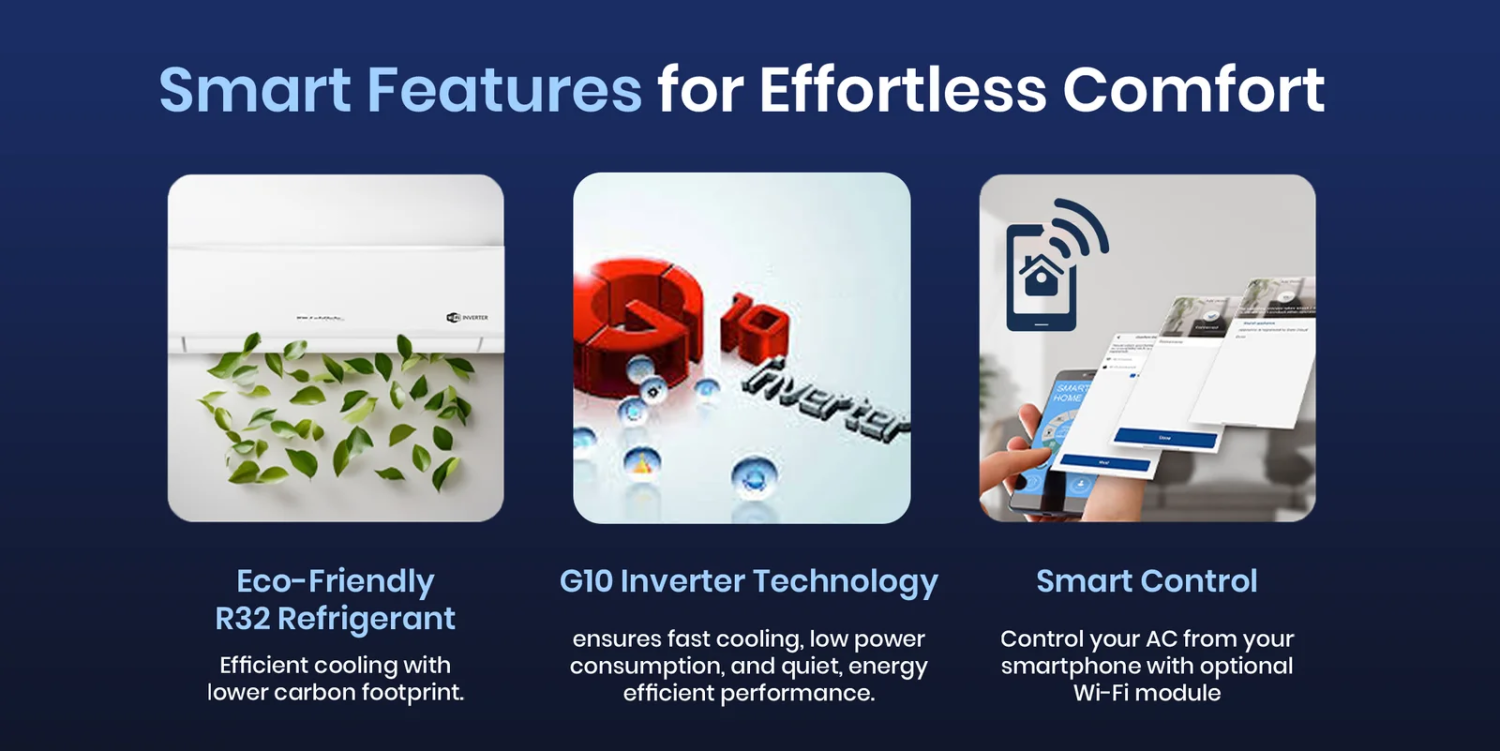 Installation is hassle-free, and the system is built for ultra-wide voltage operation, suitable for varying power conditions in Bangladesh. Gree also offers a 12-year compressor warranty, 5 years on spare parts, and 2 years service warranty, ensuring long-term peace of mind.