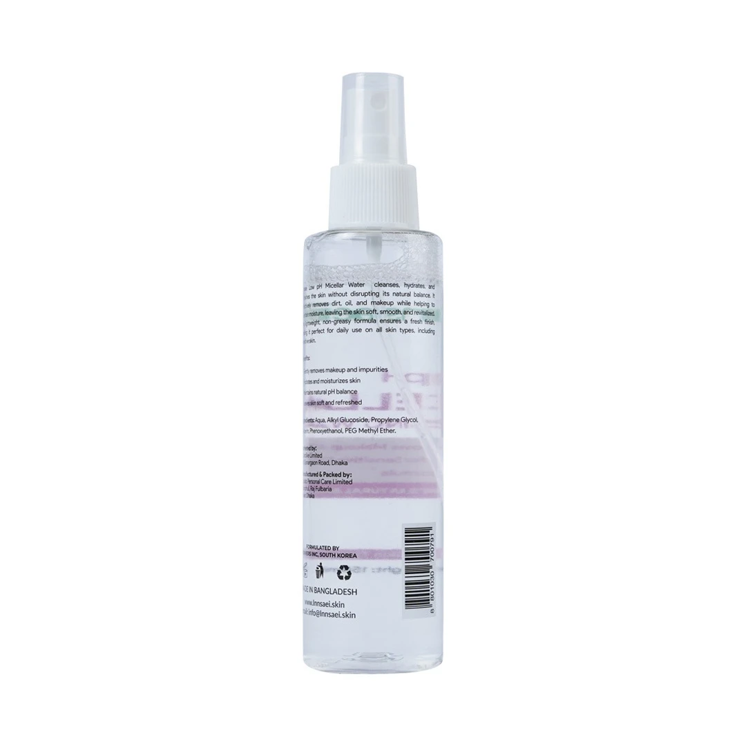 Experience a smarter way to cleanse with Innsaei Low pH Micellar Cleansing Water. This 150ml multi-tasking formula uses advanced micellar technology—tiny oil molecules (micelles) suspended in soft water—to act like a magnet, lifting away makeup, dirt, and excess oil without any harsh rubbing. Formulated at a skin-friendly low pH, it ensures your moisture barrier remains intact, leaving your face feeling clean, hydrated, and perfectly balanced.