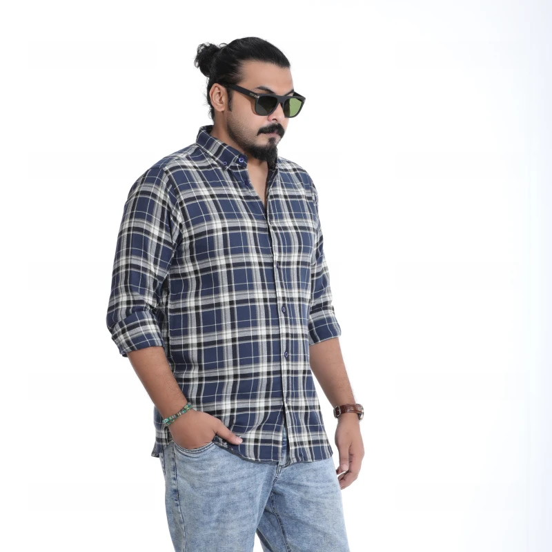 Achieve an instantly cool and casual look with this classic plaid long sleeve shirt. Featuring a timeless navy, black, and white checkered pattern, this shirt is a versatile staple for any wardrobe. Made from a soft, durable fabric (like cotton or flannel), it's perfect for layering over a t-shirt in cooler weather or wearing buttoned up on its own.