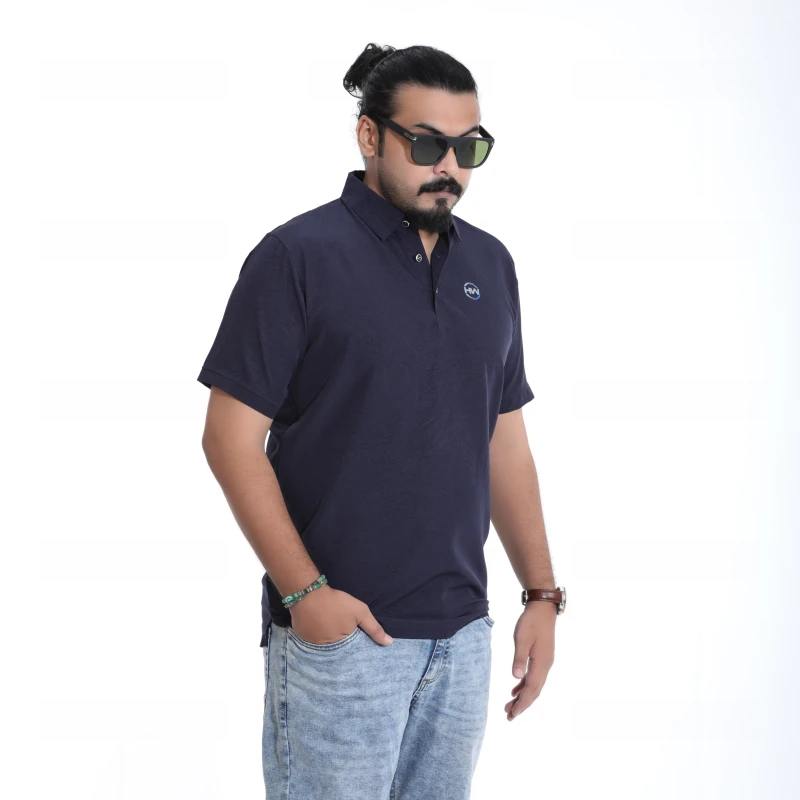 A timeless wardrobe essential, this classic navy blue polo T-shirt is designed for comfort and style. The solid color and clean lines offer a versatile look that can be dressed up or down. Made from soft, breathable fabric, it features a traditional ribbed collar with a button placket and a subtle logo on the chest. Perfect for casual outings, a day at the golf course, or simply for a smart-casual weekend look. This polo shirt is a must-have for any man's collection.