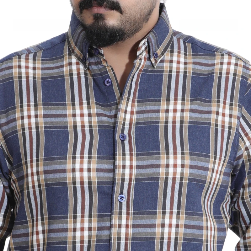"Discover the perfect blend of traditional charm and modern comfort with our essential Men's Blue Brown Plaid Shirt. This full-sleeve casual shirt is a wardrobe staple, boasting a rich combination of deep blues and warm browns, accented with white checks. It offers a refined yet relaxed vibe, suitable for a variety of casual settings. Whether you're meeting friends for coffee, heading to a casual office, or simply enjoying a laid-back day, this shirt provides both effortless style and ease."