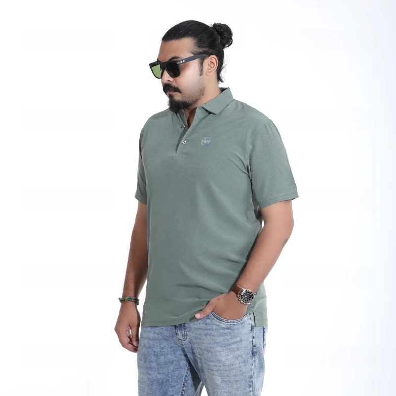 Upgrade your casual wardrobe with this sophisticated men's olive green polo t-shirt. Crafted from a high-quality, soft, and breathable pique knit fabric, this polo offers both superior comfort and a smart, refined look. It features a classic two-button placket and a ribbed collar and cuffs for a timeless appeal. A subtle, embroidered logo on the chest adds a touch of branded elegance without being overtly flashy. Perfect for a casual day out, a weekend gathering, or even a relaxed office environment, this versatile polo pairs effortlessly with jeans, chinos, or shorts.