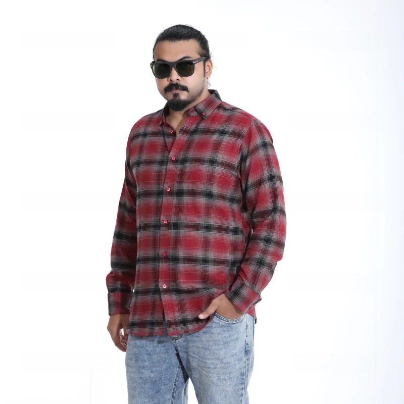 Embrace classic style and comfortable warmth with this versatile men's red and black plaid flannel shirt. Crafted from a soft, brushed flannel fabric, this shirt provides exceptional comfort and a cozy feel, perfect for cooler weather or layering. It features a timeless checkered pattern in rich red and black tones, a button-down collar, and full sleeves with buttoned cuffs. The regular fit offers a relaxed yet smart silhouette, making it ideal for casual outings, weekend adventures, or as a stylish overshirt. Pair it with jeans or chinos for an effortlessly cool and rugged look.
