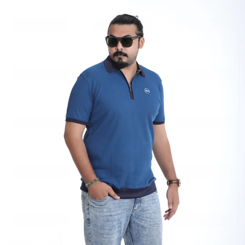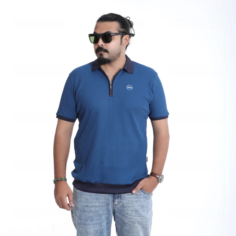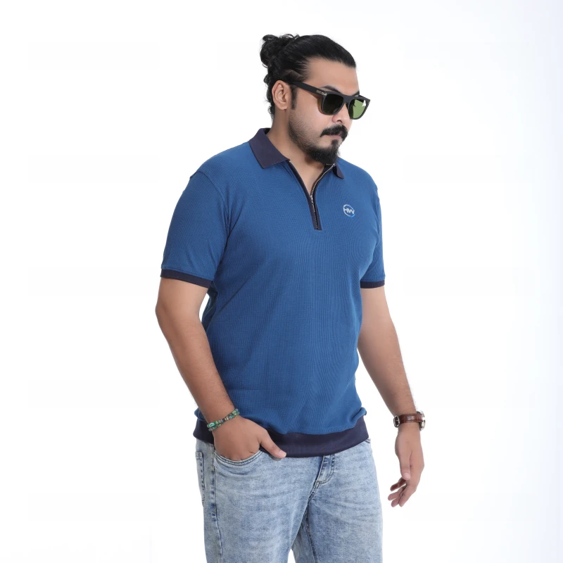 Men's Royal Blue Textured Polo Shirt with Zipper