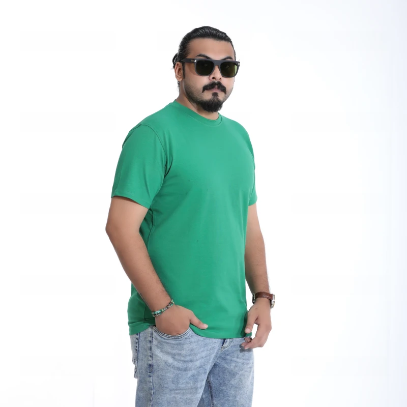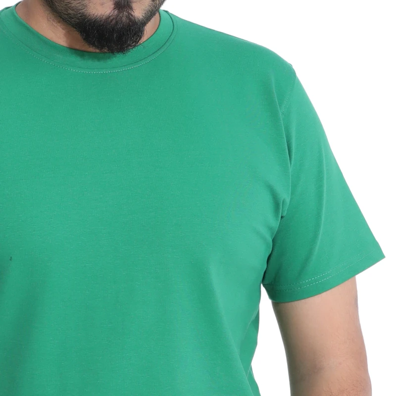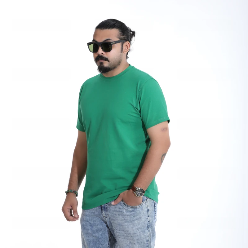 This classic solid green T-shirt is a comfortable and versatile essential for every man's casual wardrobe. Featuring a traditional crew neck and a regular fit, it's perfect for all-day comfort. Made from soft, breathable cotton, this vibrant green tee is ideal for adding a pop of color to your outfit.