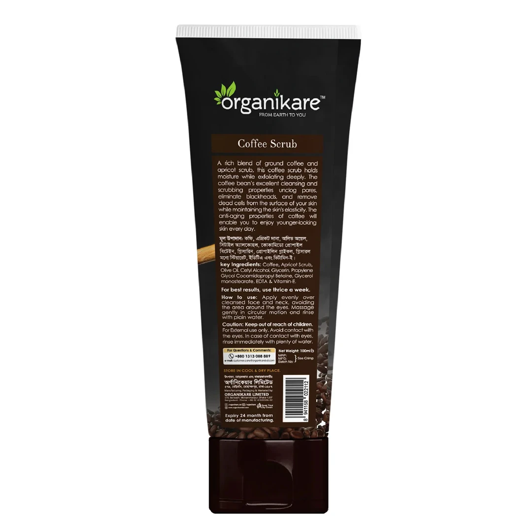 Organikare Coffee Scrub is an invigorating body scrub made with a blend of real coffee grounds, apricot seed powder, and nourishing oils. It's designed to exfoliate dead skin cells, boost circulation, and leave your skin feeling smooth, soft, and radiant.