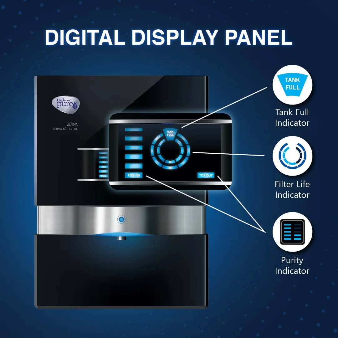 Pureit Ultima RO + UV comes with advanced technology that digitally shows you how pure your drinking water is.