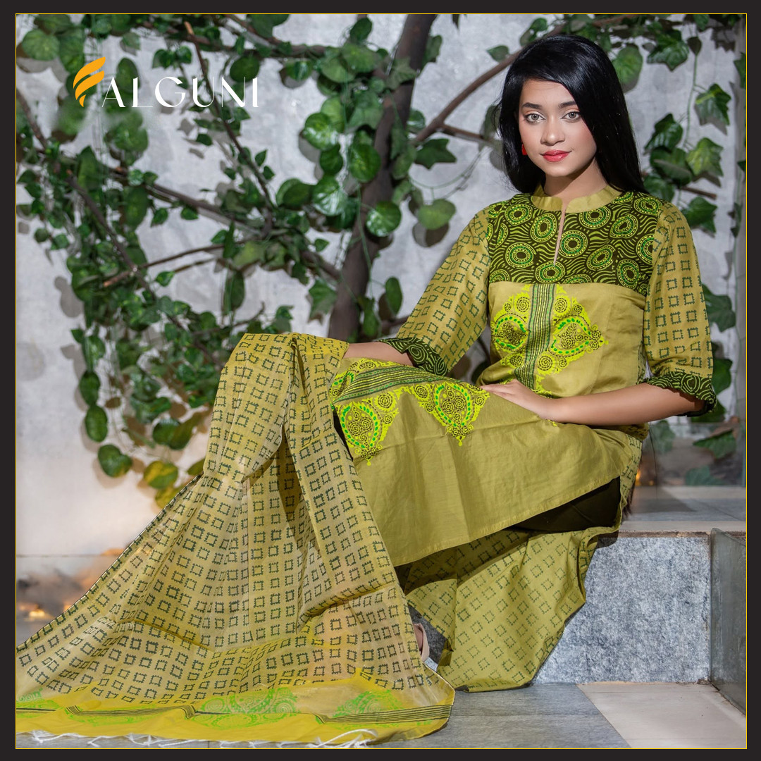 Discover the understated elegance of our Olive Green Embroidery Cotton Salwar Kameez Set. This stylish three-piece salwar kameez features a beautifully Embroidery olive green Kameez with darker green geometric motifs and delicate embroidery around the neckline and placket. The straight-cut Kameez is paired with comfortable solid olive green trousers and a lightweight dupatta featuring a complementary geometric print. Crafted from breathable fabric, this outfit is ideal for everyday wear, casual gatherings, or a sophisticated office look.