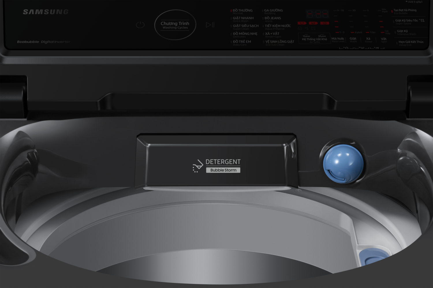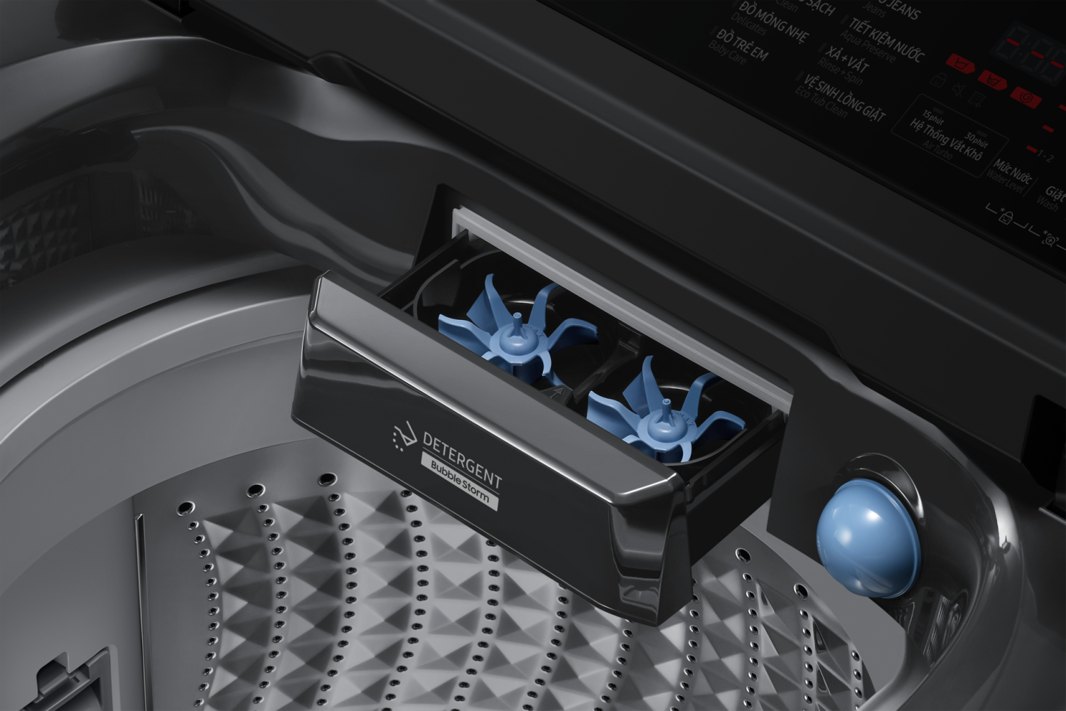 | Model Code | WA95CG4545BDSV | | Washing Capacity | Washing Capacity (kg) | 9.5 kg | | Design | Body color | Versailles Gray | | Door | Black Caviar | | Panel Display | LED | | Performance | Energy Efficiency Class | 5star | | Feature | Eco Bubble | Yes | | BubbleStorm™ | Yes | | Speed Spray™ | Yes | | Dual Storm™ | Yes | | Air Turbo | Yes | | Auto Restart | Yes | | Child Lock | Yes | | Delay End | Yes | | Drum type | 2nd Diamond | | Intensive Wash | Yes | | Magic Filter | Yes | | Motor | DIT | | Pulsator | PP Dual Storm | | Super Speed | Yes | | Spin Speed | 700 rpm | | Smart Check | Yes | | Soft Closing Door | Yes | | Water Level | 10 Levels | | Cycle | Aqua Preserve | Yes | | Baby Care | Yes | | Bedding | Yes | | Delicates | Yes | | Eco Tub Clean | Yes | | Jeans | Yes | | Normal | Yes | | Option List | Ecobubble, SuperSpeed, Power Tub Clean, Intensive Wash, Delay End | | Quick Wash | Yes | | Rinse + Spin | Yes | | Super Clean | Yes | | Physical specification | Net Dimension (WxHxD) | 540 x 1008 x 577 mm | | Net Weight | 30 kg | | Gross Dimension (WxHxD) | 580 x 1080 x 640 mm | | Gross Weight | 34 kg | | Voltage/Frequency | 220V/50Hz |