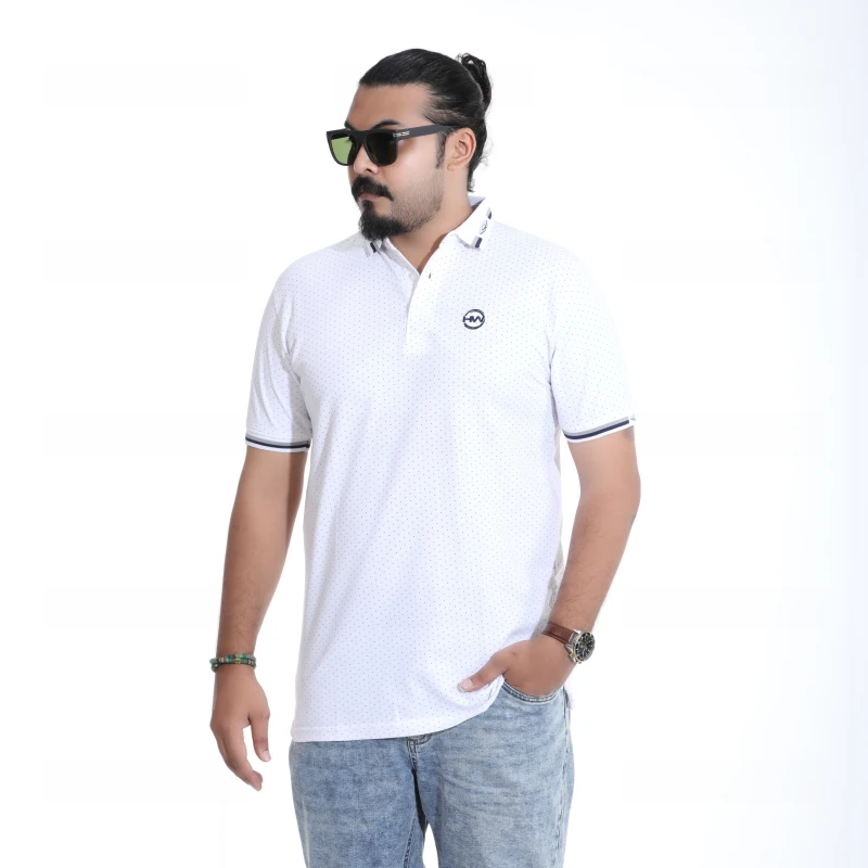 Classic White Polo T-Shirt with Blue Micro-Dots