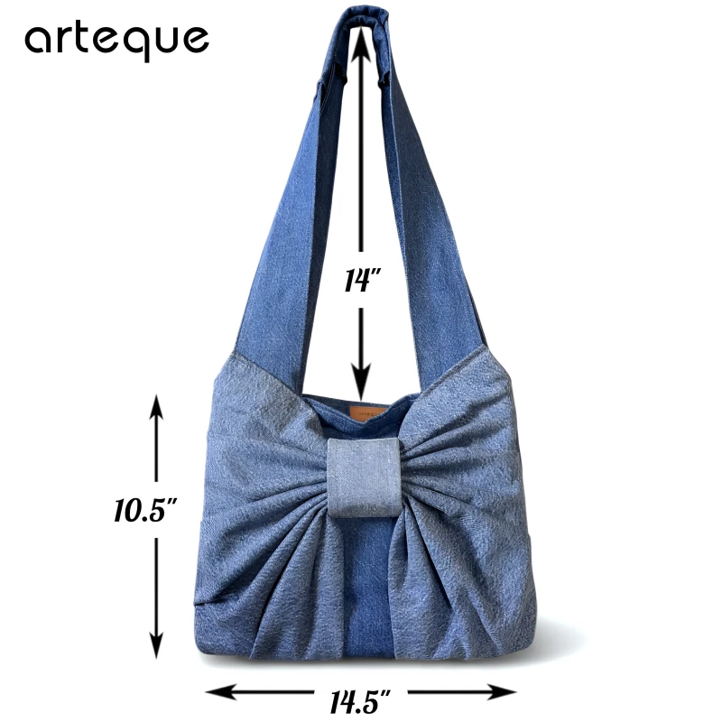 Elevate your everyday style with our Denim Bow Tote Bag, a perfect blend of casual chic and effortless elegance. Crafted from premium, distressed denim fabric in a rich, timeless blue hue, this spacious tote features a playful oversized bow detail that adds a whimsical touch without overwhelming the design. The soft, slouchy silhouette drapes beautifully over your shoulder, making it ideal for weekend errands, market runs, or casual outings.
