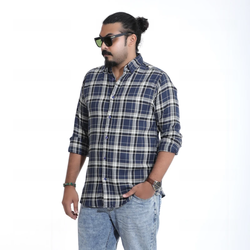 Achieve an instantly cool and casual look with this classic plaid long sleeve shirt. Featuring a timeless navy, black, and white checkered pattern, this shirt is a versatile staple for any wardrobe. Made from a soft, durable fabric (like cotton or flannel), it's perfect for layering over a t-shirt in cooler weather or wearing buttoned up on its own.