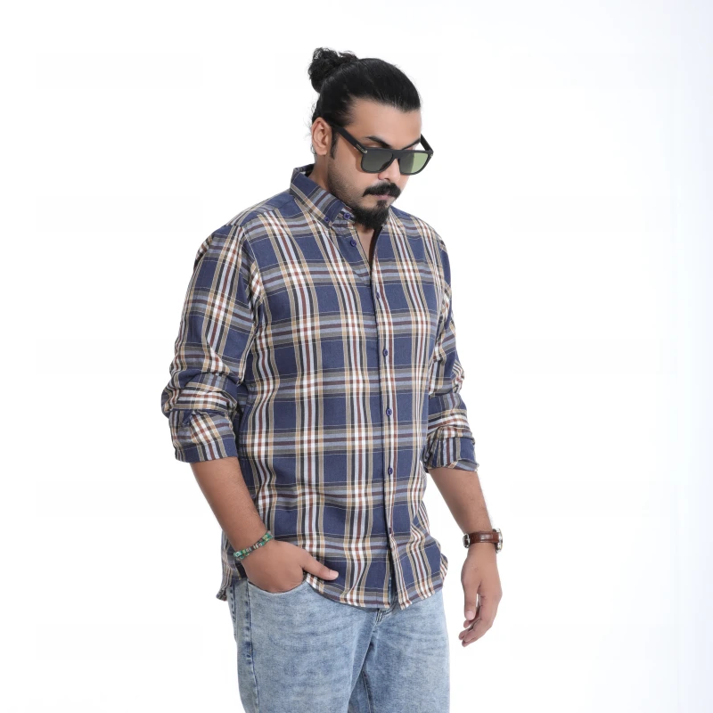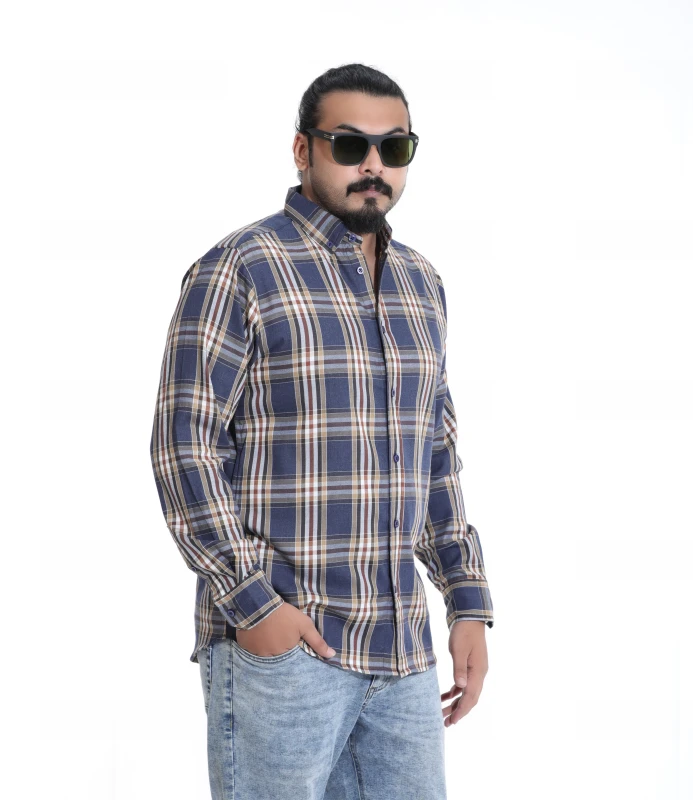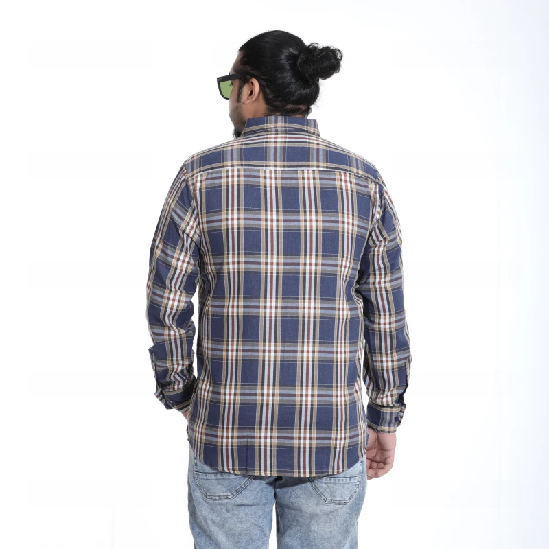 "Discover the perfect blend of traditional charm and modern comfort with our essential Men's Blue Brown Plaid Shirt. This full-sleeve casual shirt is a wardrobe staple, boasting a rich combination of deep blues and warm browns, accented with white checks. It offers a refined yet relaxed vibe, suitable for a variety of casual settings. Whether you're meeting friends for coffee, heading to a casual office, or simply enjoying a laid-back day, this shirt provides both effortless style and ease."