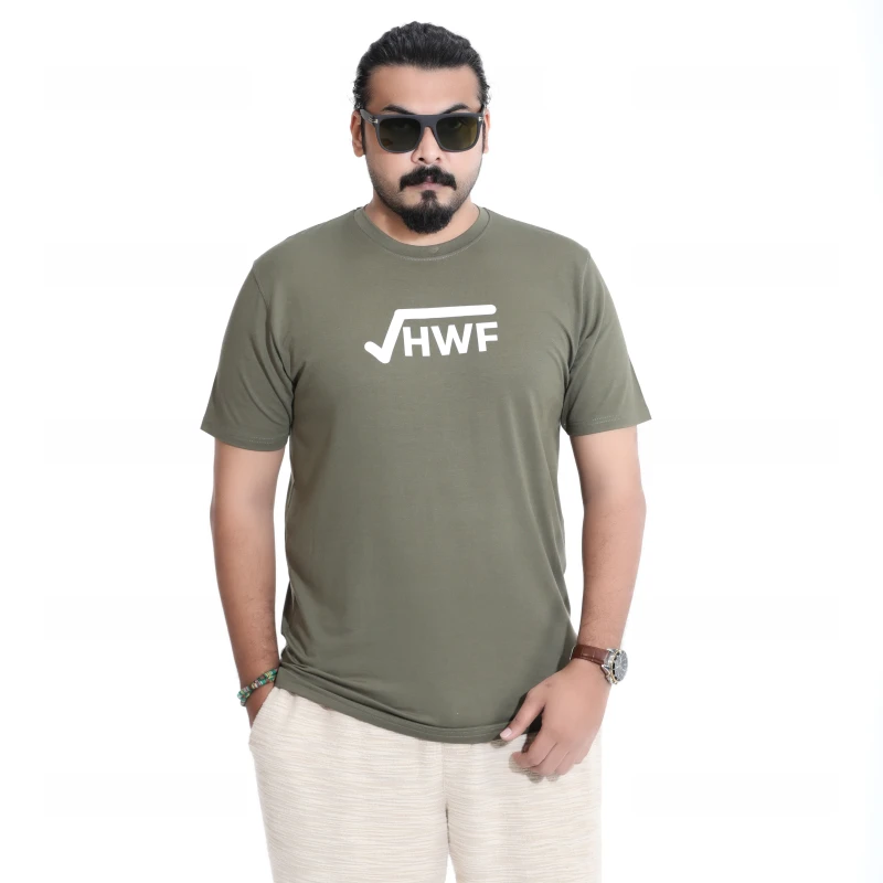 Elevate your casual style with this comfortable and trendy olive green t-shirt. Made from a soft, breathable cotton blend, this tee features a bold "HWF" graphic print on the front, adding a touch of urban edge to your everyday look. The classic crew neck and regular fit ensure maximum comfort and versatility. Perfect for pairing with jeans, shorts, or joggers, this t-shirt is ideal for casual outings, weekend adventures, or just relaxing at home. Its durable fabric and quality print are designed to last, making it a staple in your wardrobe.