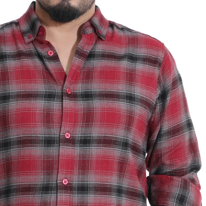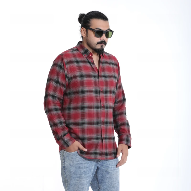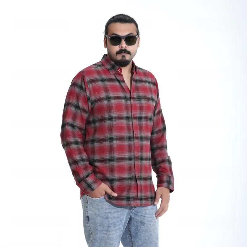 Embrace classic style and comfortable warmth with this versatile men's red and black plaid flannel shirt. Crafted from a soft, brushed flannel fabric, this shirt provides exceptional comfort and a cozy feel, perfect for cooler weather or layering. It features a timeless checkered pattern in rich red and black tones, a button-down collar, and full sleeves with buttoned cuffs. The regular fit offers a relaxed yet smart silhouette, making it ideal for casual outings, weekend adventures, or as a stylish overshirt. Pair it with jeans or chinos for an effortlessly cool and rugged look.
