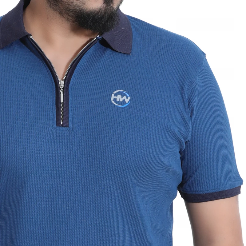 Men's Royal Blue Textured Polo Shirt with Zipper