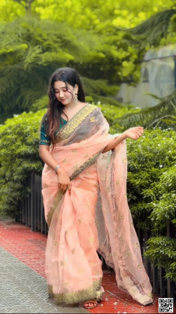 ? বডি: হালকা, ট্রান্সপারেন্ট অর্গানজা ফ্যাব্রিক – ক্লাসি ও ফ্লোয়ি লুক