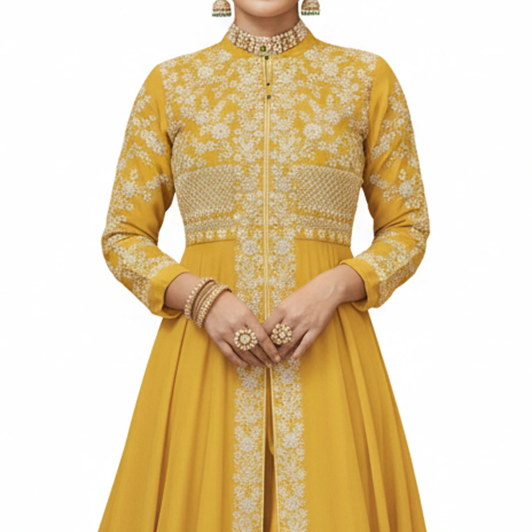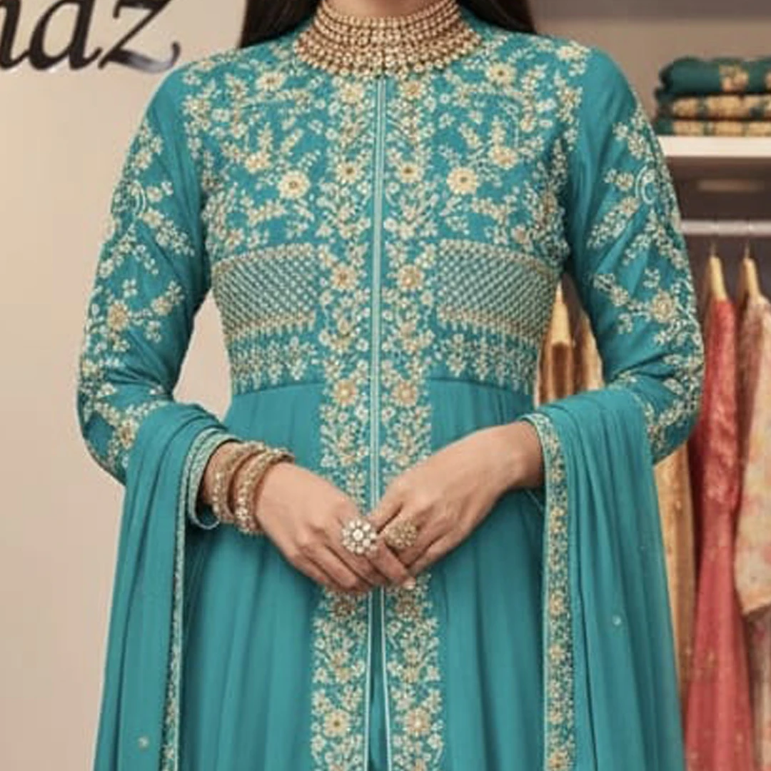 রেডিমেড জর্জেট এমব্রয়ডারি পার্টি ড্রেস